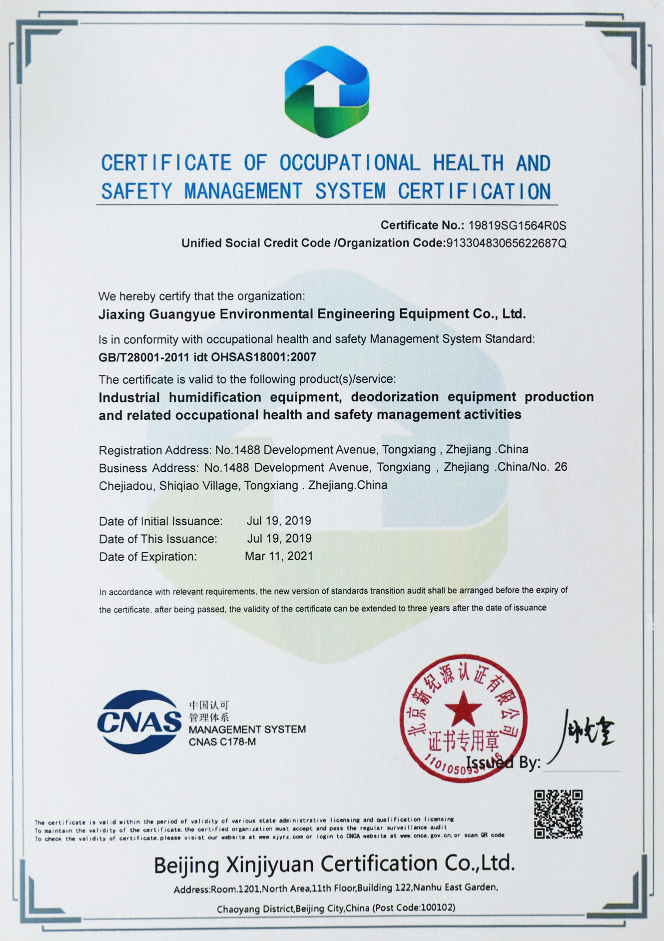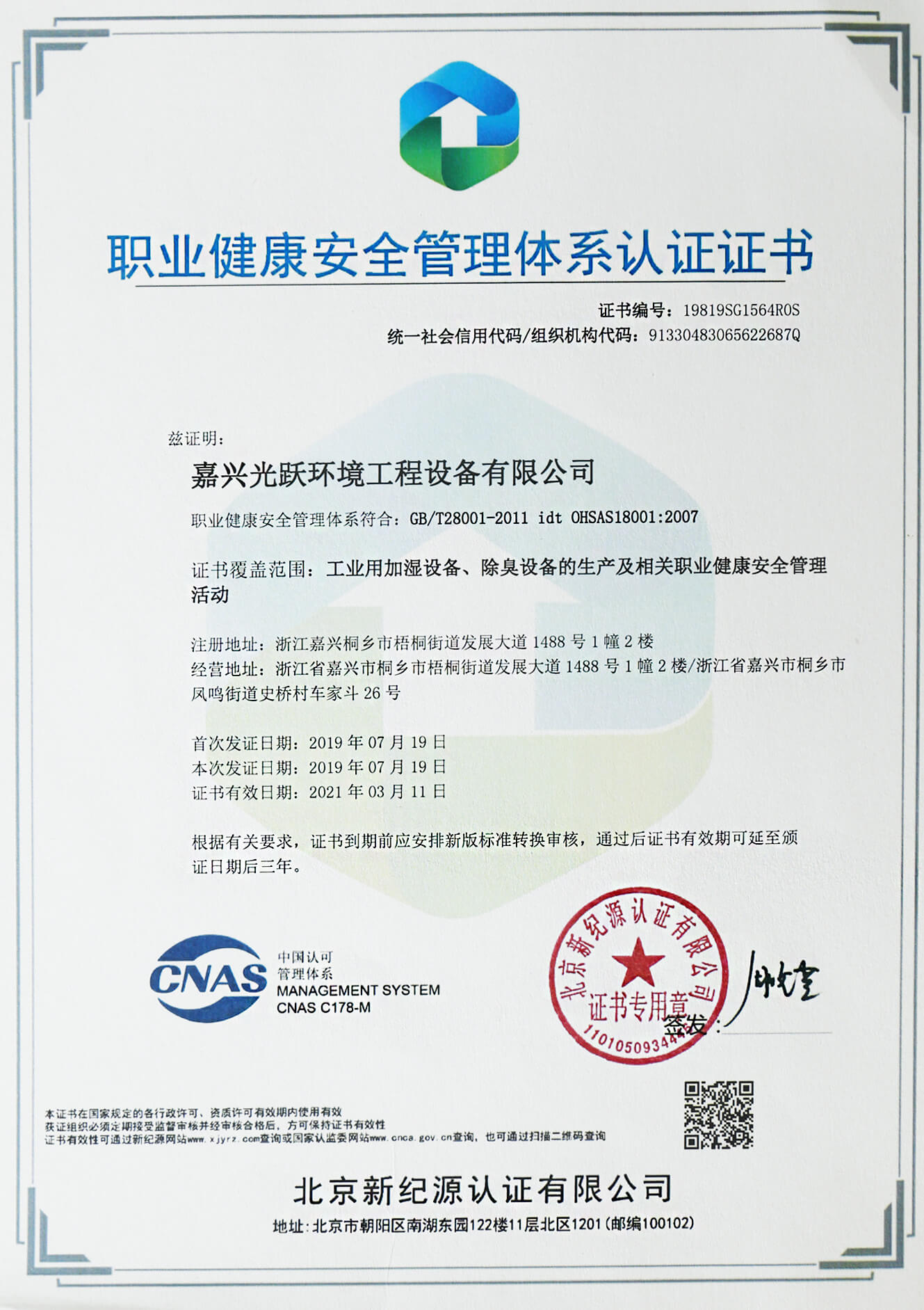 通過(guò)了ISO9001、ISO14001、OHSAS18001、AAA和CE等管理體系的認(rèn)證